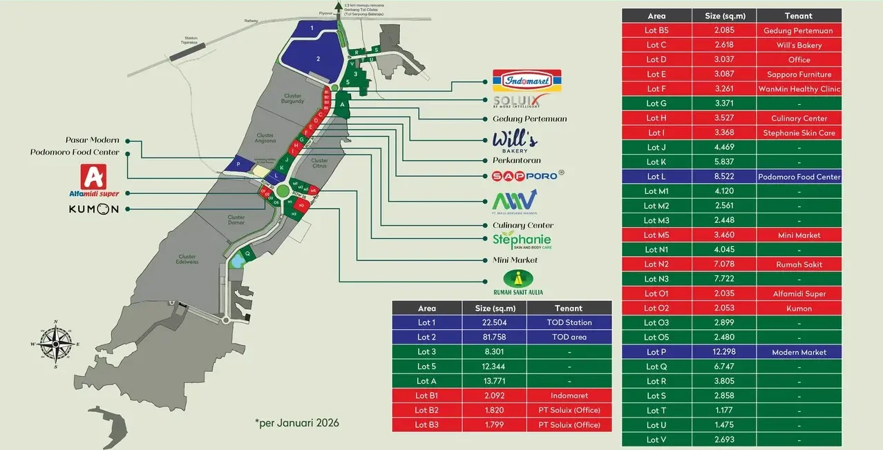 Dikelilingi oleh berbagai klaster hunian yang terus berkembang, area komersial ini menawarkan potensi arus pengunjung yang konsisten sepanjang hari. Kondisi ini menjadikannya sangat ideal untuk berbagai jenis usaha, mulai dari ritel, kuliner (F&B), layanan jasa, hingga perkantoran.